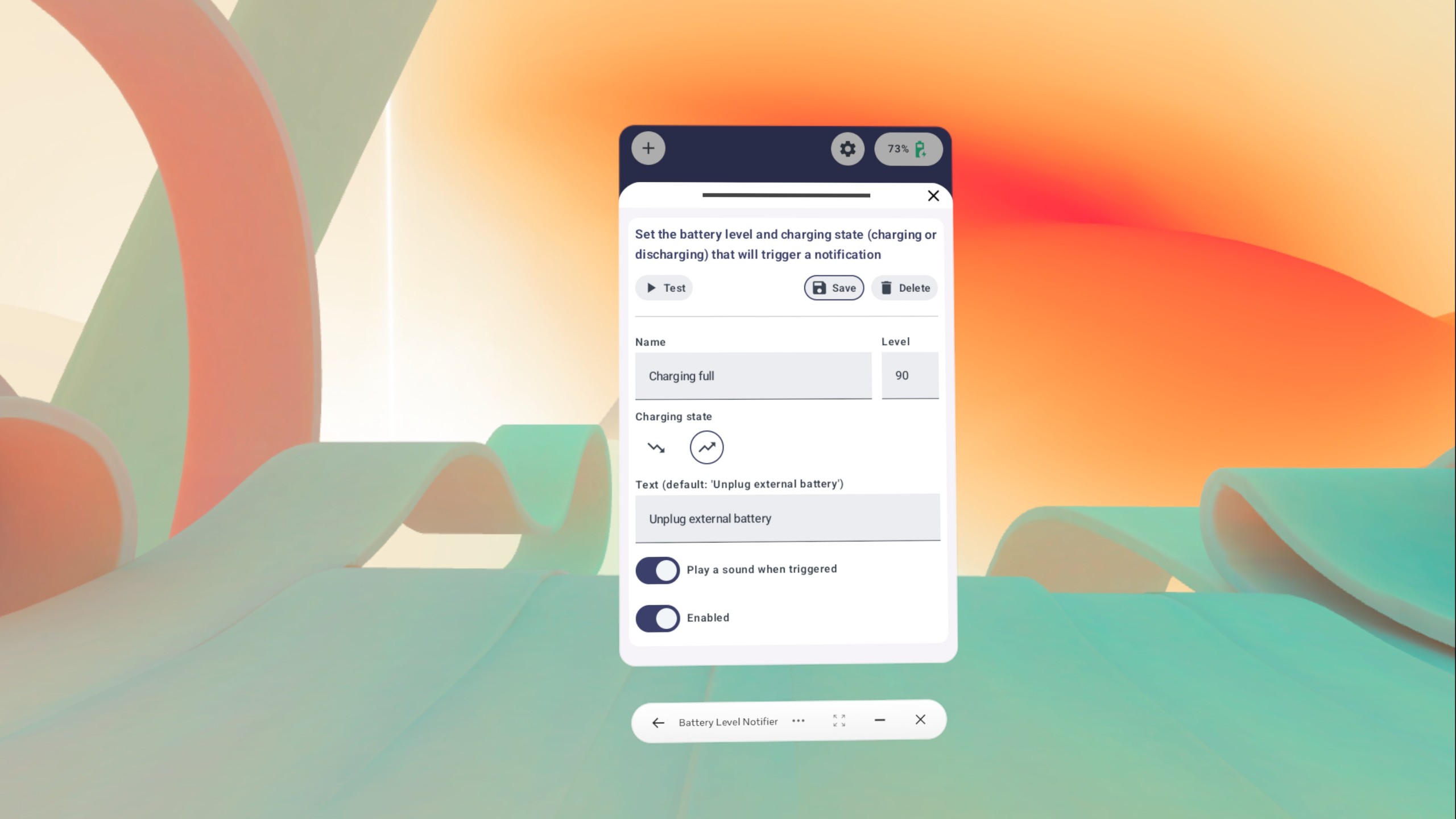 Get notified when your battery reaches a specific level, or when your device is connected to or disconnected from a power source. Create multiple alerts and enable sound notifications for added convenience.
